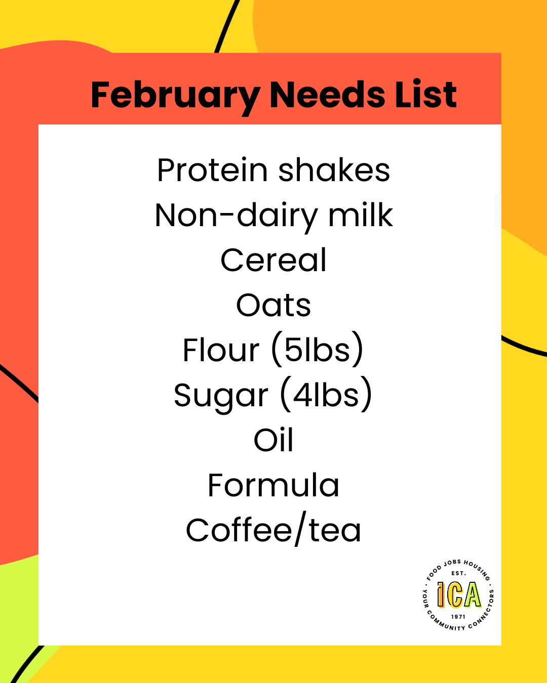 Looking to donate food at ICA? Please bring your items to 11588 K-Tel Drive, Minnetonka, MN 55343.